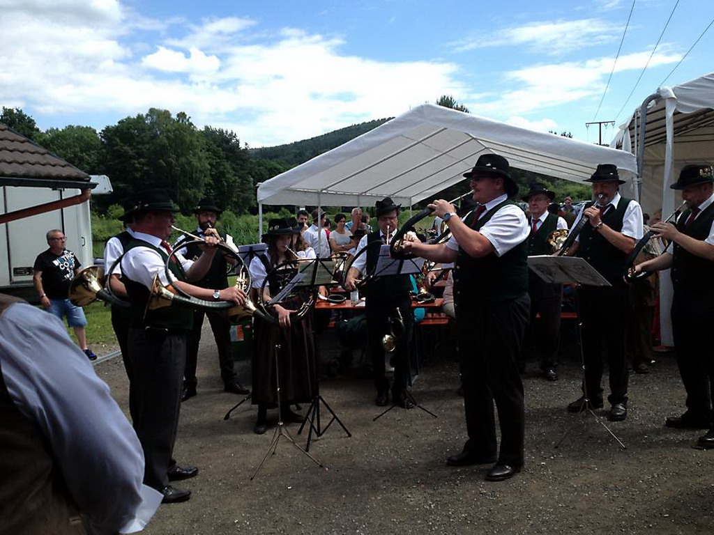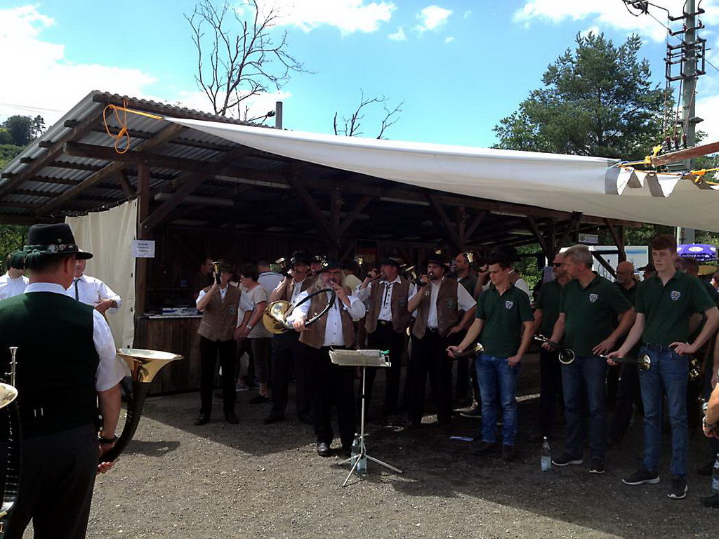 Die teilnehmende Bevölkerung zeigte sich beeindruckt, und wurde im Rahmen von kurzen Vorträgen durch den Hornmeister der Gemündener Bläsergruppe über die Historie des Bläsertreffens informiert.